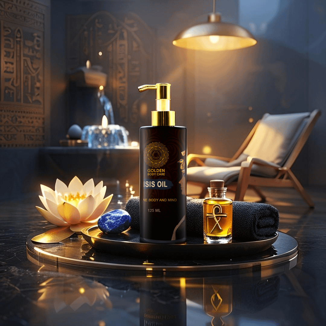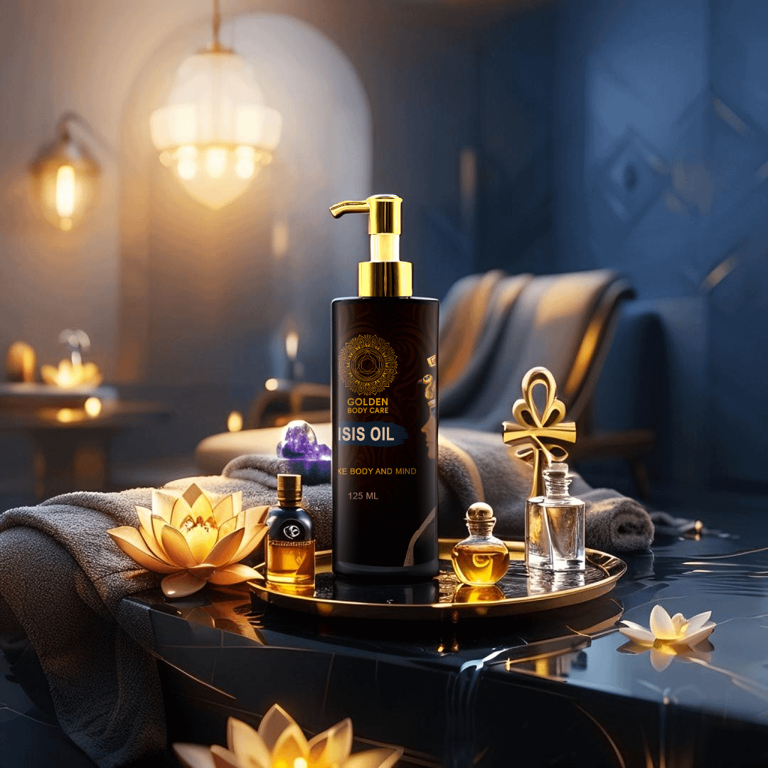 Step into a realm of ancient luxury with the Golden Isis Harmony Oil from Golden Body Care, a luxurious body oil crafted to relax both body and mind. Inspired by the divine essence of Isis, the Egyptian goddess of healing, this lightweight oil is infused with a rich blend that deeply nourishes your skin while enveloping you in a warm, exotic scent that promotes tranquility. Perfect for daily hydration, its non-greasy formula absorbs effortlessly, delivering natural benefits to enhance your skin’s radiance and soothe your spirit. Designed to transform your routine into a sacred spa ritual, this oil blends Egyptian heritage with modern elegance. Presented in a sleek black bottle with a gold pump, it embodies the premium quality and sophistication of the Golden Body Care collection, making it a standout addition to your wellness arsenal.